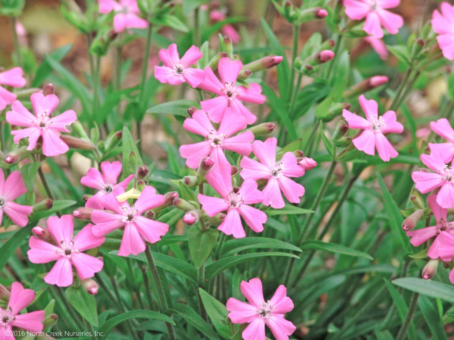 Silene caroliniana ‘Short and Sweet’ prefers sun to part shade and coarse, very well-drained soil. It will tolerate moist, moderately fertile soils, so long as they drain well. It is drought tolerant and relatively pest resistant. Avoid disturbance once established.